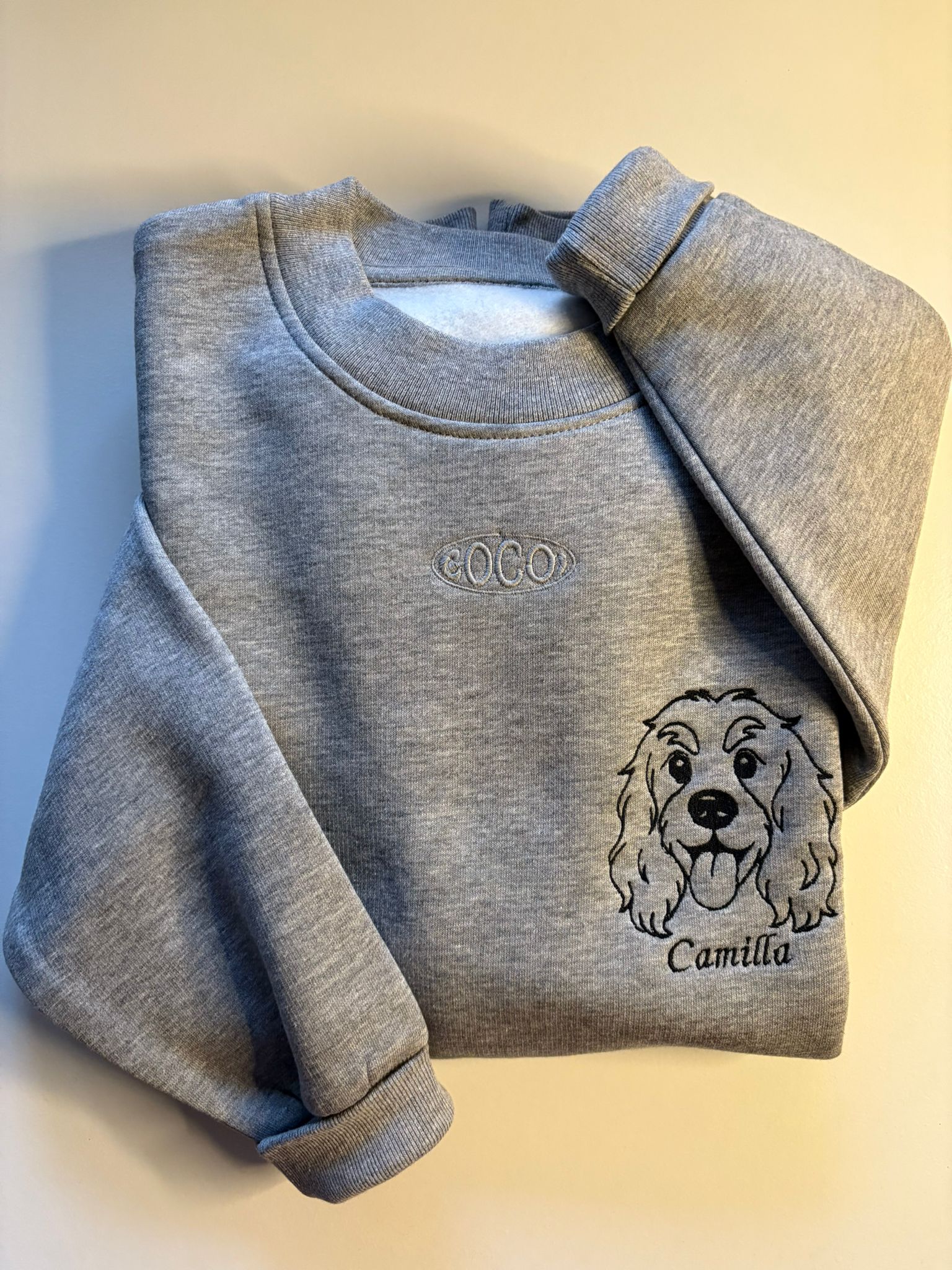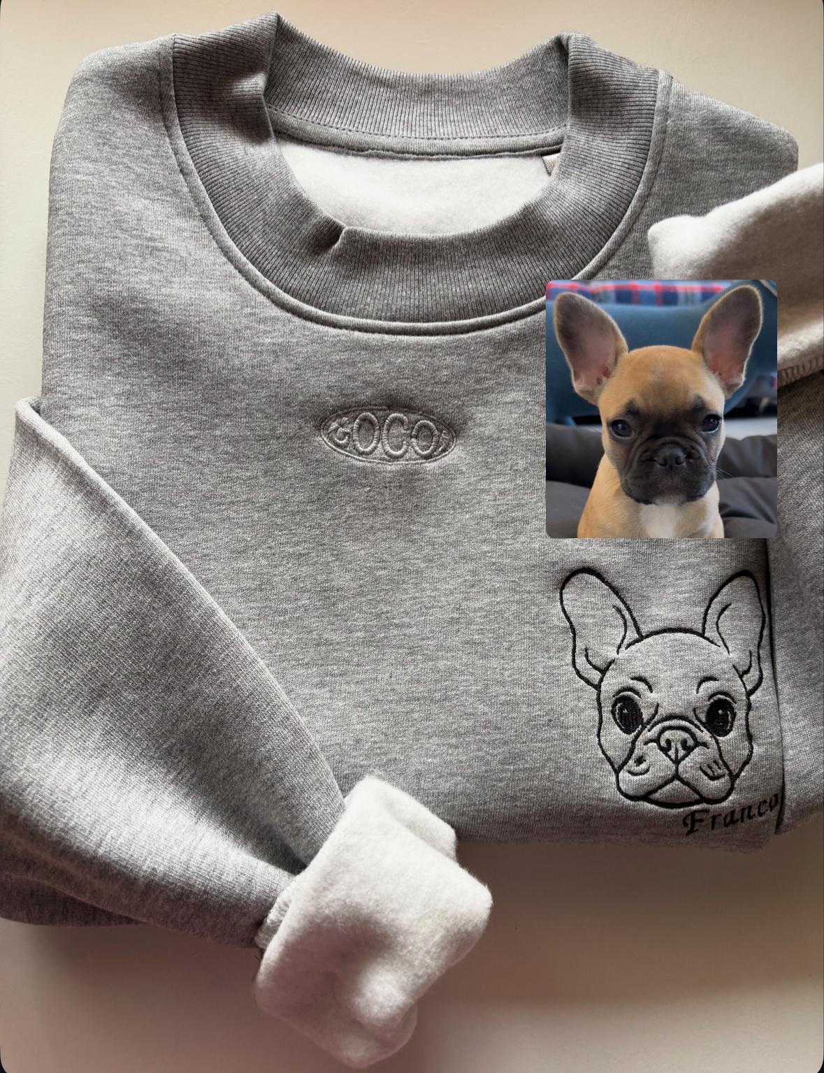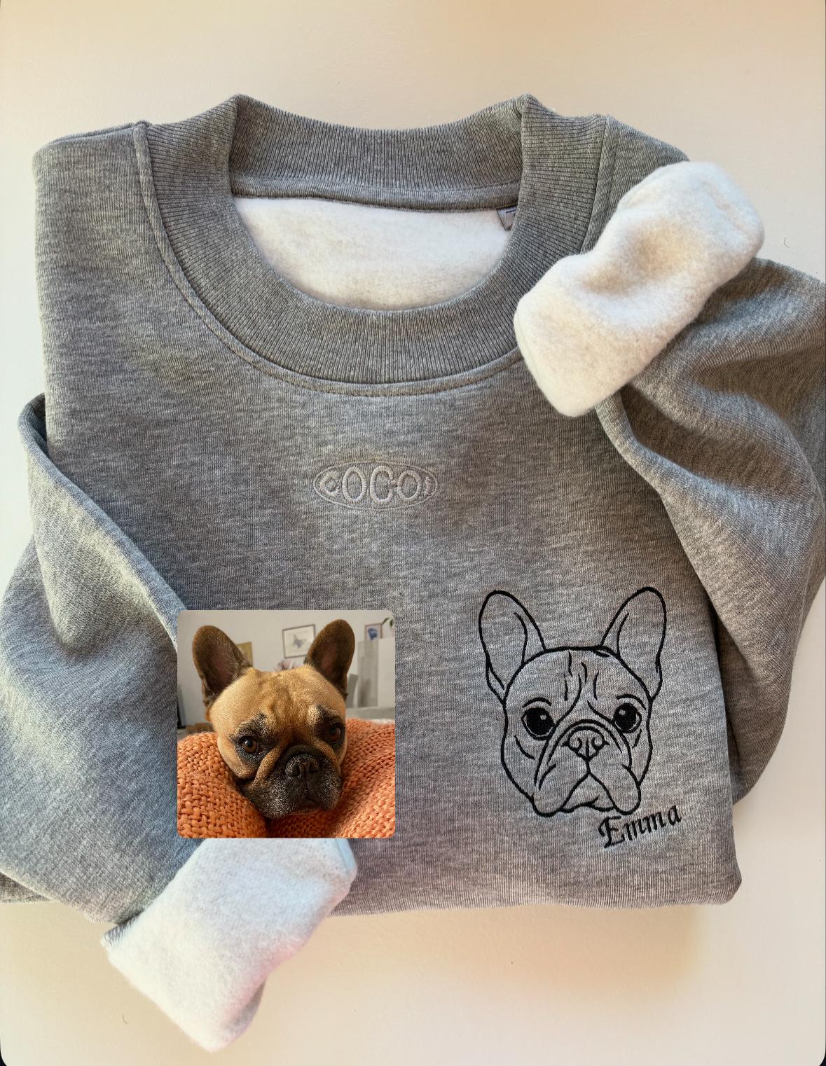 La tua felpa, la tua storia. Carica la tua foto → creiamo line art → ricamata in filo nero o bianco senza riempimento. Un pezzo personale e senza tempo. Fino a 2 disegni diversi possono essere inclusi per felpa